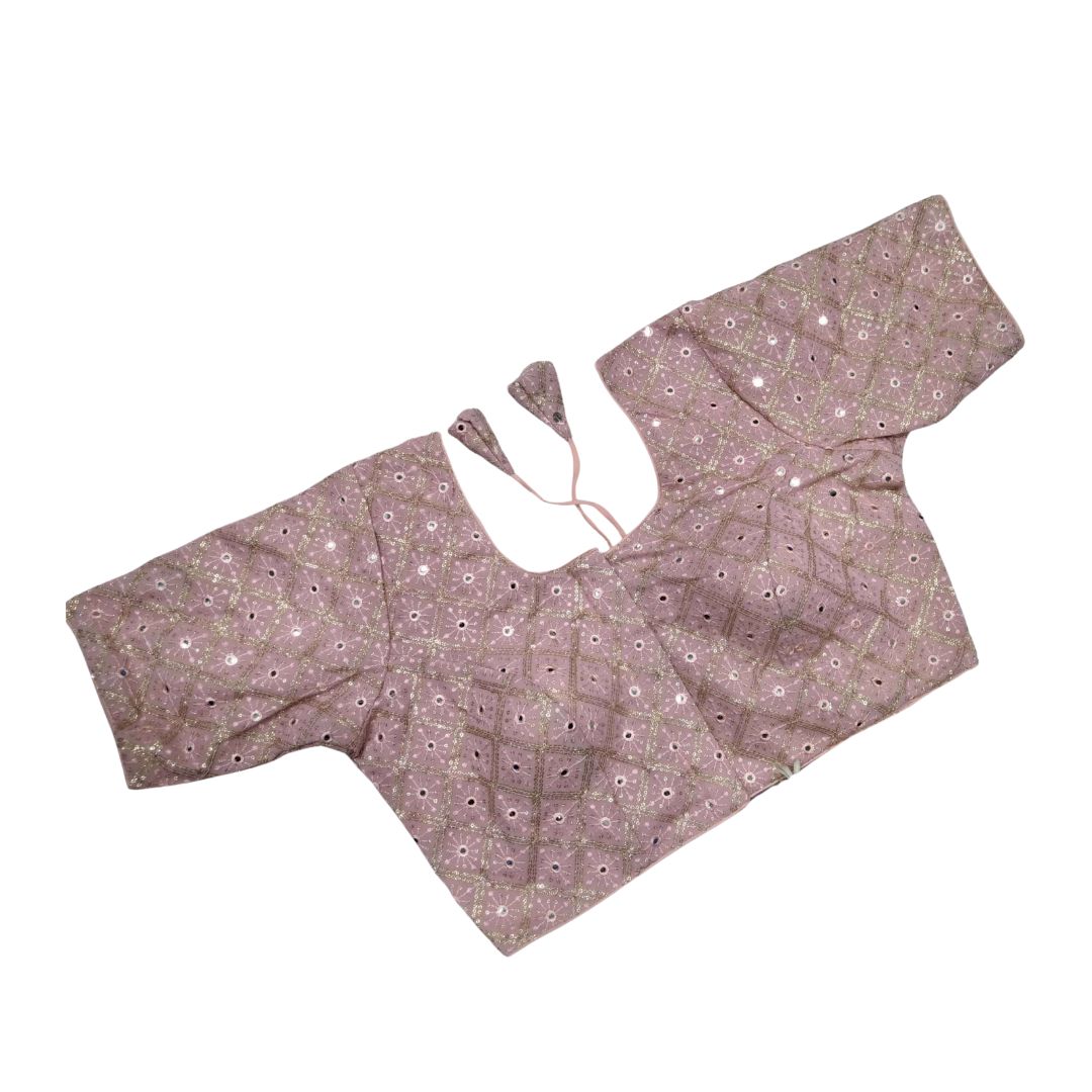 Beautiful Embroidery With Golden Thread And Mirror Work Baby Pink Peach Color Blouse.
