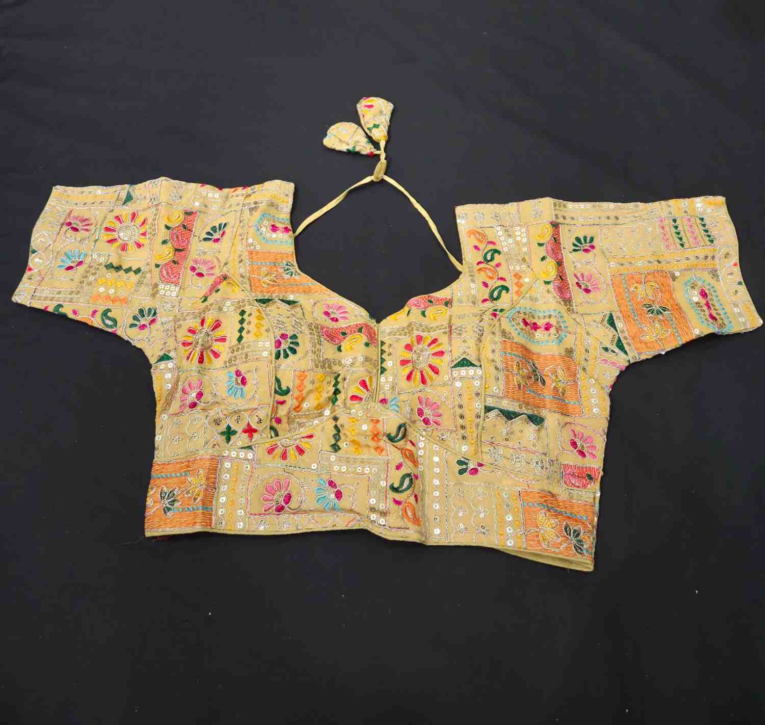 Beautiful Golden Color With Multi Color Embroidery And Sequence Work Blouse.