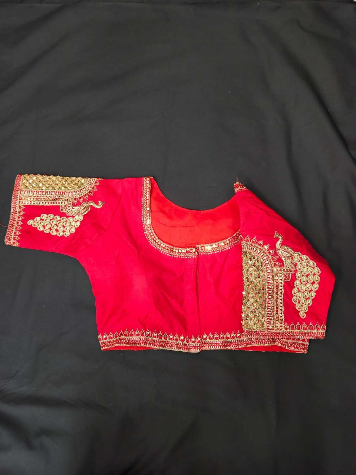 Beautiful Hand Embroidery Red Color Peacock Design Blouse.