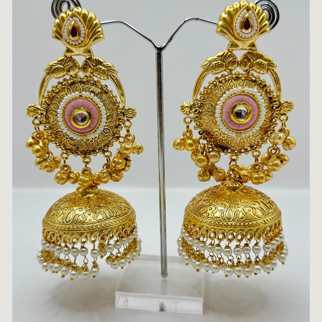 Beautiful Latest Design With Gold Plated Pearl And Pink Stone Color Work Very Light Weight Jhumka Earrings