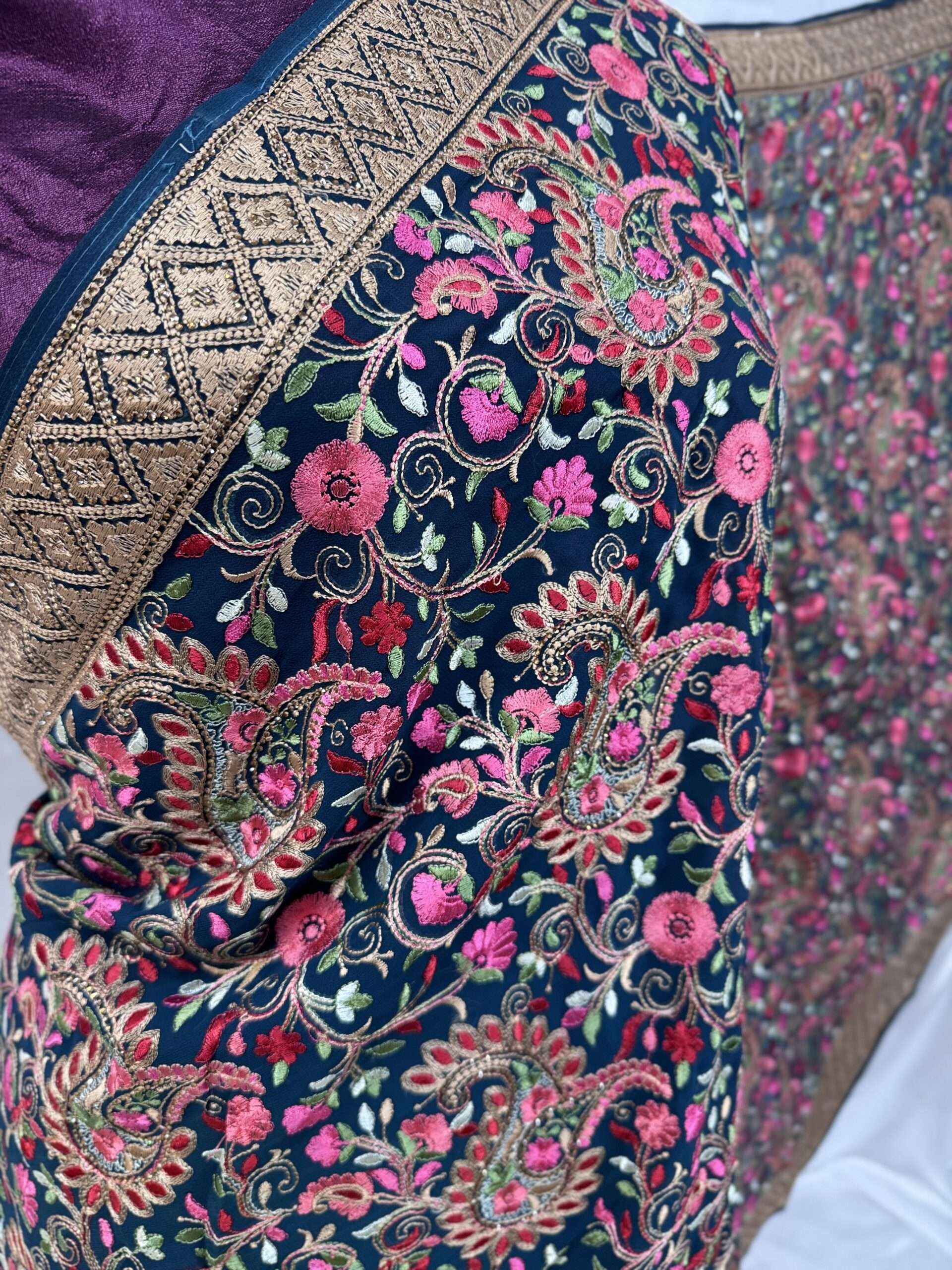 BEAUTIFUL PURE GEORGETTE BRIDAL OR PARTY WEAR DESIGNER JAL WORK SAREE WITH MUTICOLOR HEAVY EMBROIDERY AND STONE WORK COMES WITH UNSTICHED BLOUSE.