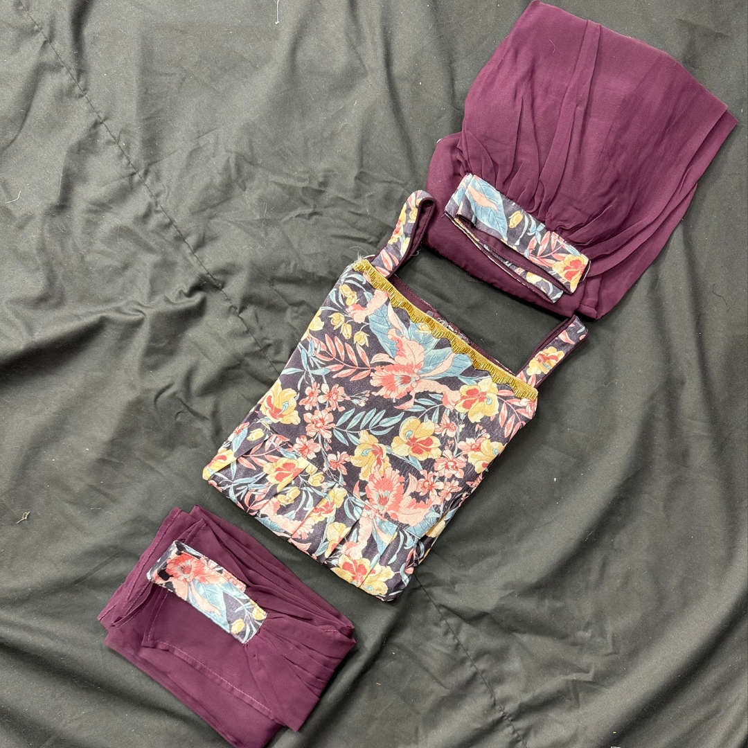 Be the first to review “Designer 3 Piece Suit Wine Color Pure Georgette Fabric Embroidery Sequence, Mirror And Pearl Work On Neck Comes With Matching Dupatta.”