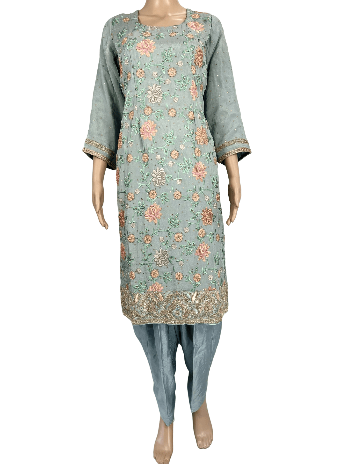 The designer party wear suit is a perfect fusion of traditional craftsmanship and contemporary design. The intricately embroidered patterns that adorn the suit are a testament to the skill and dedication of the artisans who created it.