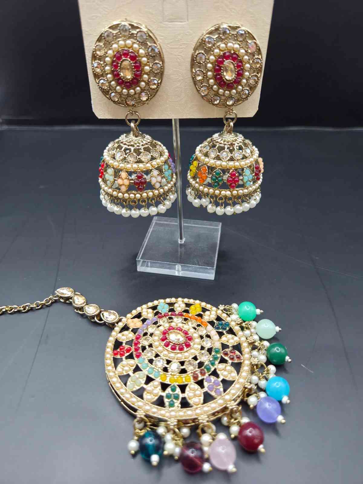 Multi Color Kundan And Pearl Work Very Light Weight Earring with Tikka Set.