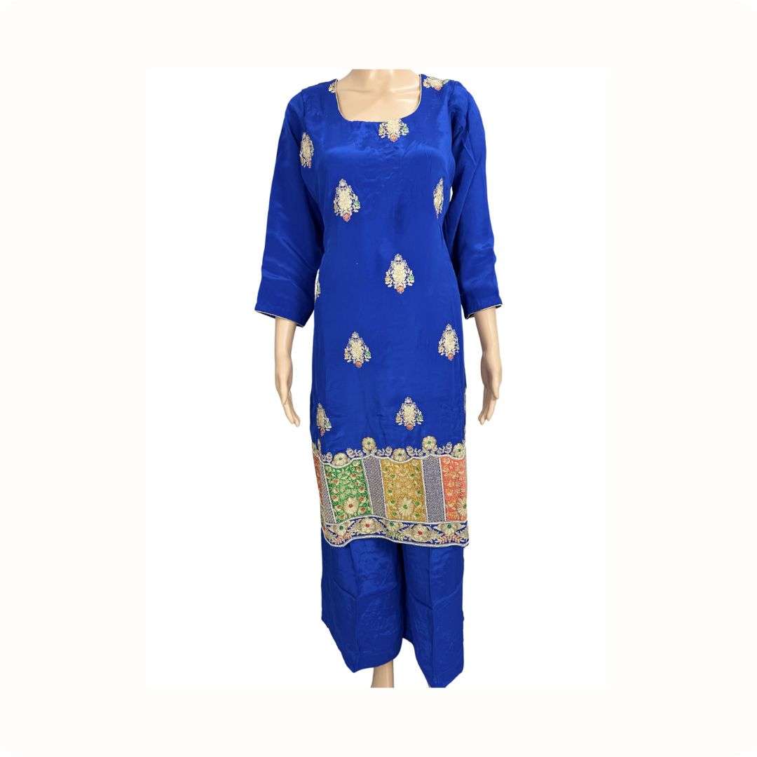 Royal Blue Stones Suit for Women. This exquisite ensemble seamlessly blends traditional craftsmanship with contemporary design, creating a mesmerizing attire that is destined to make a lasting impression. The color not only complements a variety of skin tones but also lends an air of authority and poise.