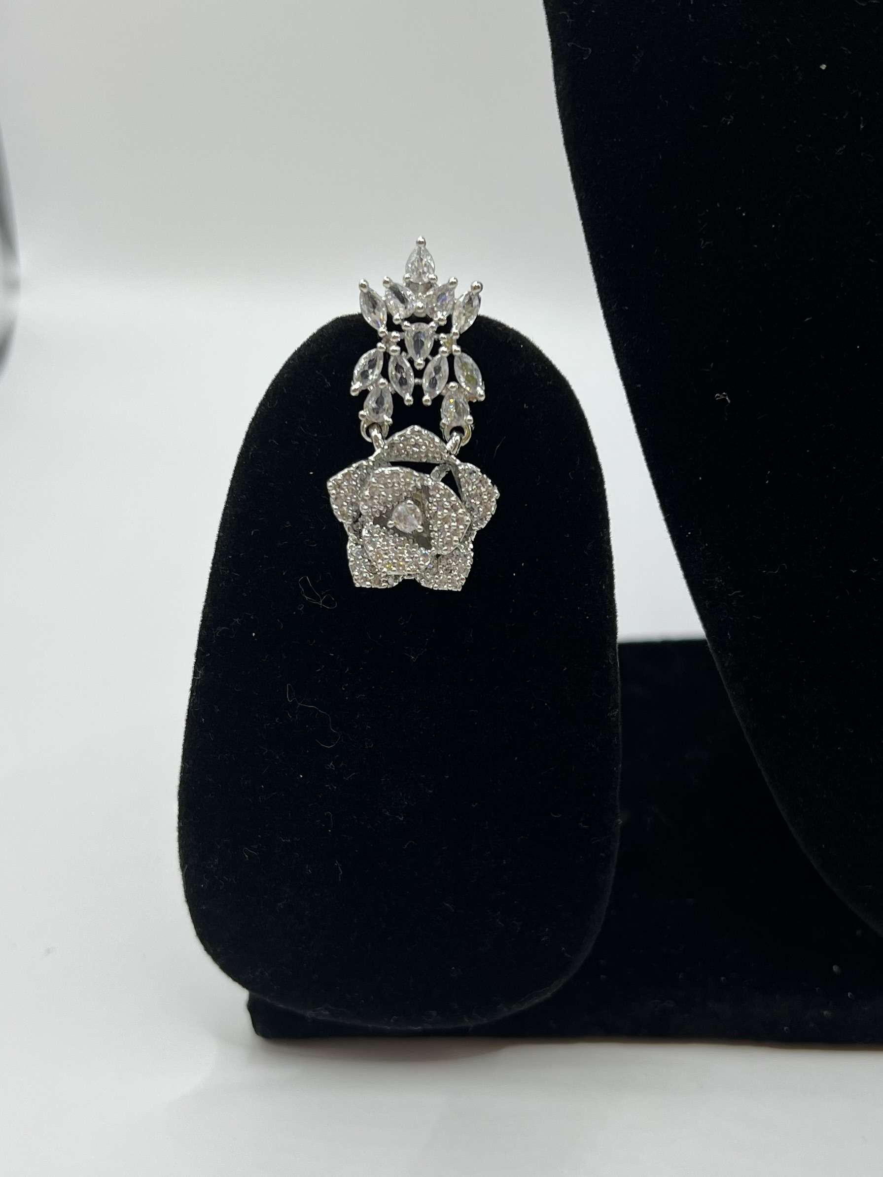 The Silver Flower Diamond Necklace Set is a stunning and elegant jewelry ensemble that combines the timeless beauty of silver with the dazzling brilliance of diamonds. This exquisite set includes a necklace and matching earrings, making it the perfect choice for special occasions or as a cherished gift for a loved one.