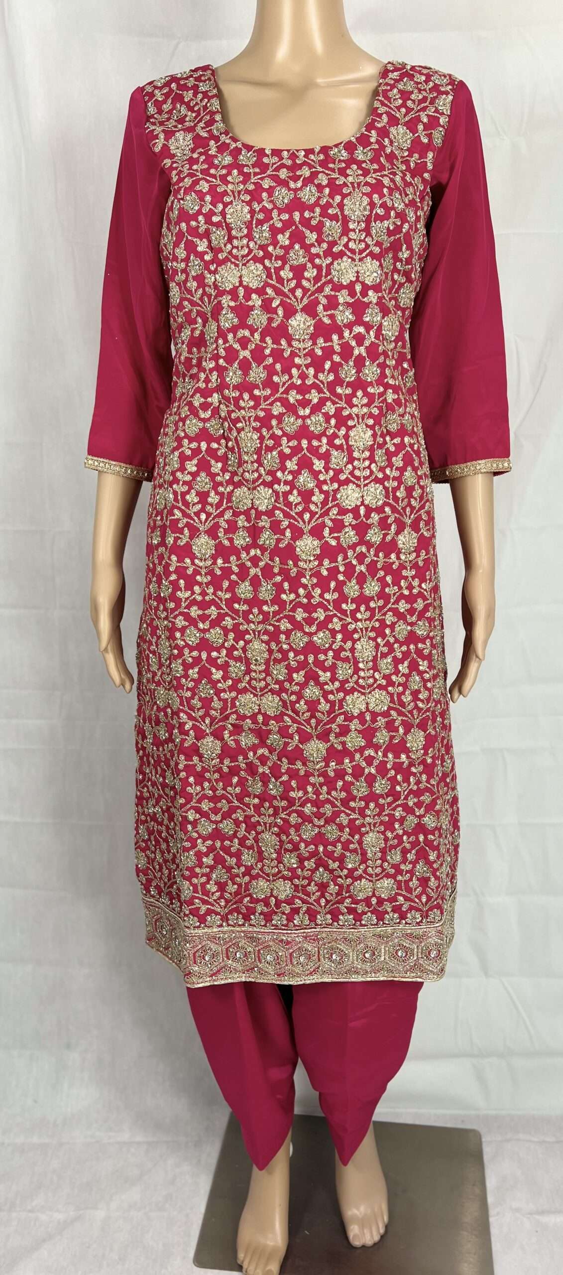 (Sold) The delicate embroidery work adorning the suit elevates its charm, featuring intricate patterns and motifs that are meticulously handcrafted by skilled artisans.